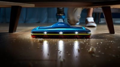 I LED della spazzola rivelano la polvere e la sporcizia nascoste