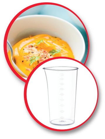 Questo frullatore a immersione con 450 W di potenza offre risultati rapidi, con prestazioni ad alta efficienza ideali per un'ampia varietà di ricette.