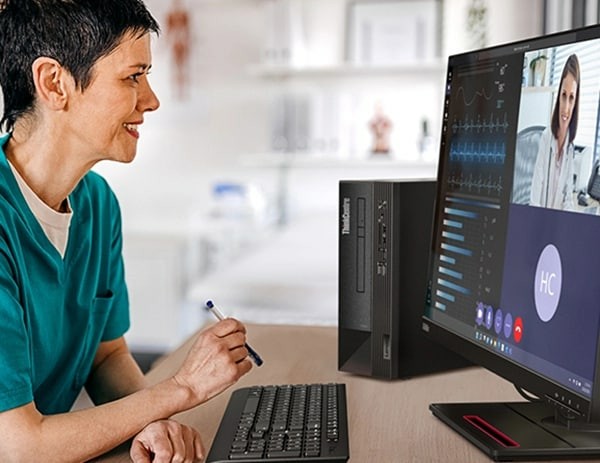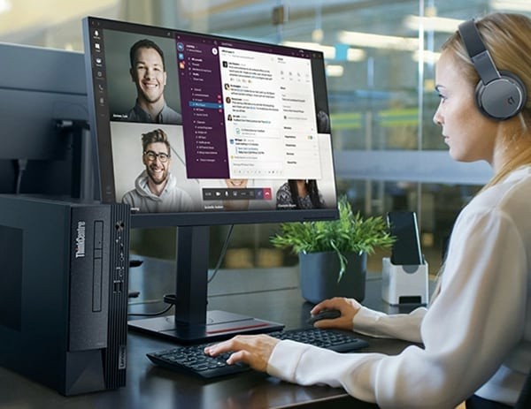 Facile da installare, ThinkCentre Neo 50s di quarta generazione Small è progettato per garantire a te e ai tuoi colleghi di rimanere in contatto, ovunque lavoriate. Sono disponibili numerose porte USB anteriori e posteriori per le periferiche e una vasta gamma di opzioni di connessione video, da VGA a DisplayPort fino ad HDMI. È tutto fluido e veloce, dalla connessione ad altri dispositivi alla collaborazione online.