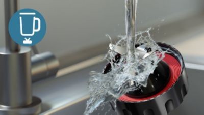 Il programma automatico one-touch pulisce il recipiente con acqua calda e una goccia di detersivo liquido per piatti. Tutte le parti rimovibili sono lavabili in lavastoviglie.