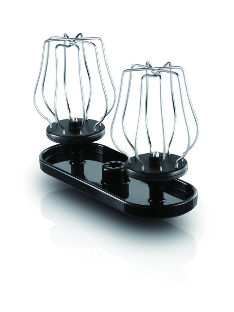 La frusta doppia in metallo insieme al pulsante automatico one touch crea albumi ariosi (aumento del volume fino al 600%) e panna perfettamente montata (aumento del volume fino al 200%). Creare dessert deliziosi non è mai stato così facile!
