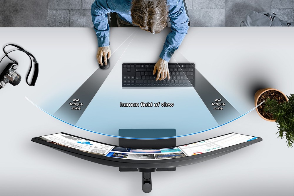 Migliora la produttività e riduci l'affaticamento oculare anche nelle giornate di lavoro più impegnative. Il raggio di curvatura 1000R è quello che più si avvicina alla curvatura del campo visivo dell'occhio umano: la messa a fuoco sarà immediata e i benefici sull'affaticamento oculare maggiori rispetto ad uno schermo piatto, per un'esperienza all'insegna del comfort.