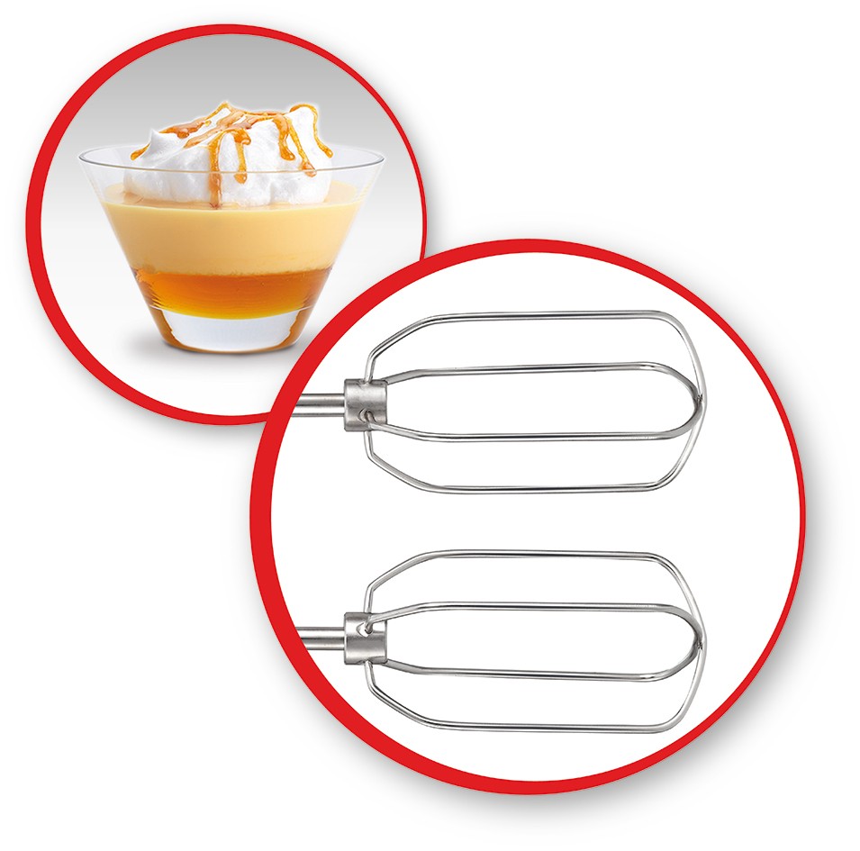 Con lo sbattitore Quickmix mescolare diventa semplice e veloce! Quickmix è il potente e versatile sbattitore elettrico che velocizza e facilita la preparazione dei dolci! Il suo potente motore da 300 W, con 5 regolazioni di velocità e funzione turbo forniscono un perfetto controllo per qualsiasi ricetta. Con 2 set di strumenti in acciaio inossidabile - fruste per impasti, preparati per dolci, uova e crema, e ganci impastatori per impastare agevolmente pizza e pane - lo sbattitore Quickmix è il perfetto alleato per le preparazioni al forno. Goditi risultati perfetti, sempre!