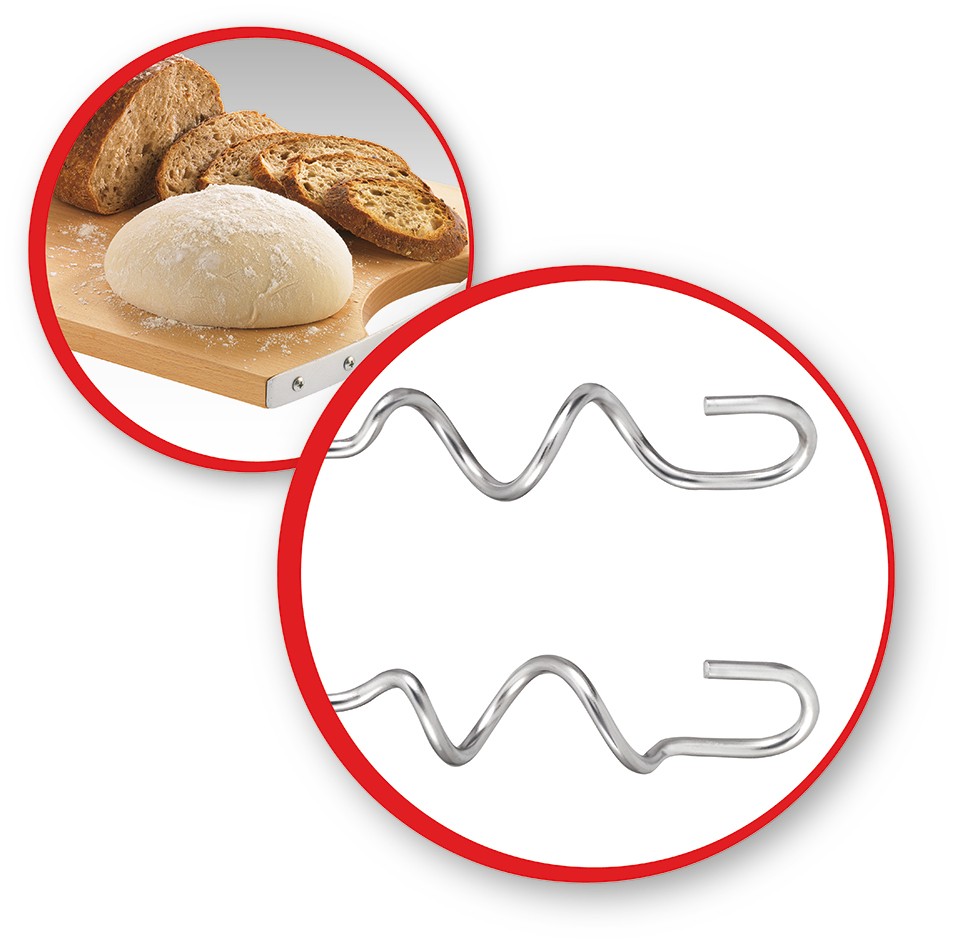 Set di ganci impastatori in acciaio inossidabile per impastare agevolmente pizza o pane.