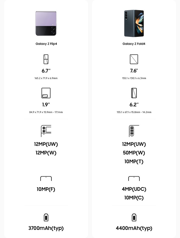 *Le dimensioni dello schermo misurate diagonalmente sono di 6.7” considerando l'intero rettangolo e di 6.6” considerando gli angoli stondati; l'area di visualizzazione effettiva è inferiore per la presenza degli angoli stondati e del foro della fotocamera. *Dato riferito a Galaxy Z Fold4, Z Flip4, Z Fold3 5G e Z Flip3 5G. Galaxy Z Flip4 è resistente all’acqua, ma non è impermeabile. Lo smartphone è stato testato in un ambiente controllato ed è certificato come resistente all'acqua in situazioni specifiche (soddisfa i requisiti di classificazione IPX8 previsti dallo standard internazionale IEC 60529). Condizioni di test: temperatura ambiente, prova di immersione fino a 1,5 metri in acqua dolce per un massimo di 30 minuti. Non adatto ad utilizzo in condizioni diverse da quelle di test. Non usare in spiaggia o in piscina, doccia, spa o sauna, né esporre ad intensi flussi d’acqua o all’acqua corrente, né usare durante sport acquatici. Galaxy Z Flip4 non è resistente alla polvere. I danni da liquidi non sono coperti dalla garanzia convenzionale Samsung.