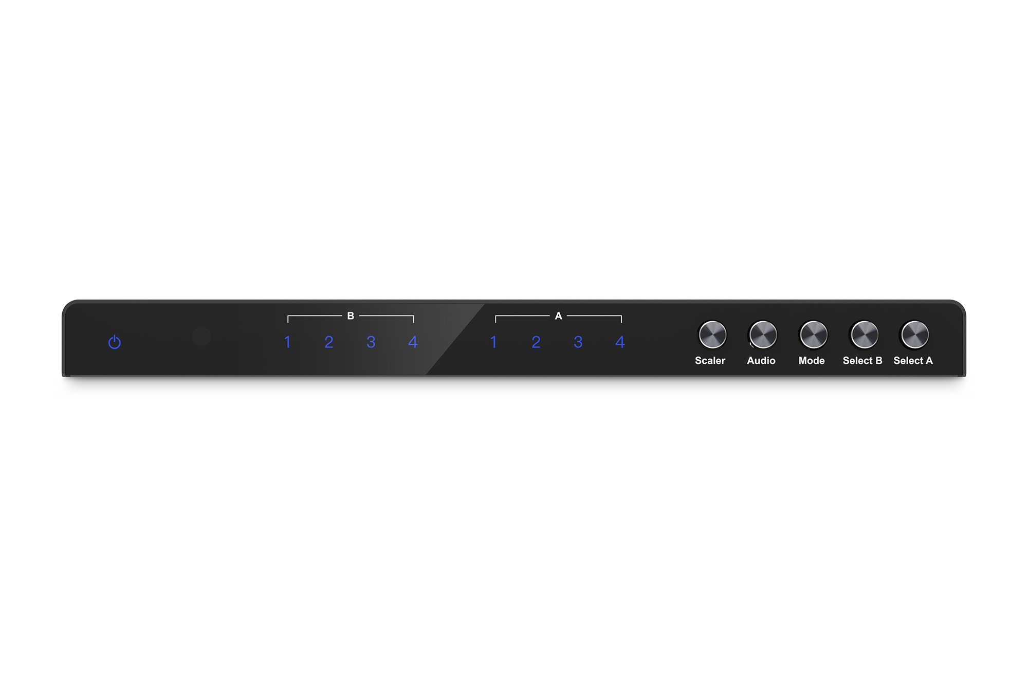 - Multi-Viewer: 6 modalità per la visualizzazione individuale delle sorgenti sull’uscita HDMI A (primaria) o sulle uscite HDMI A e B contemporaneamente (secondaria) tramite telecomando o sul dispositivo stesso