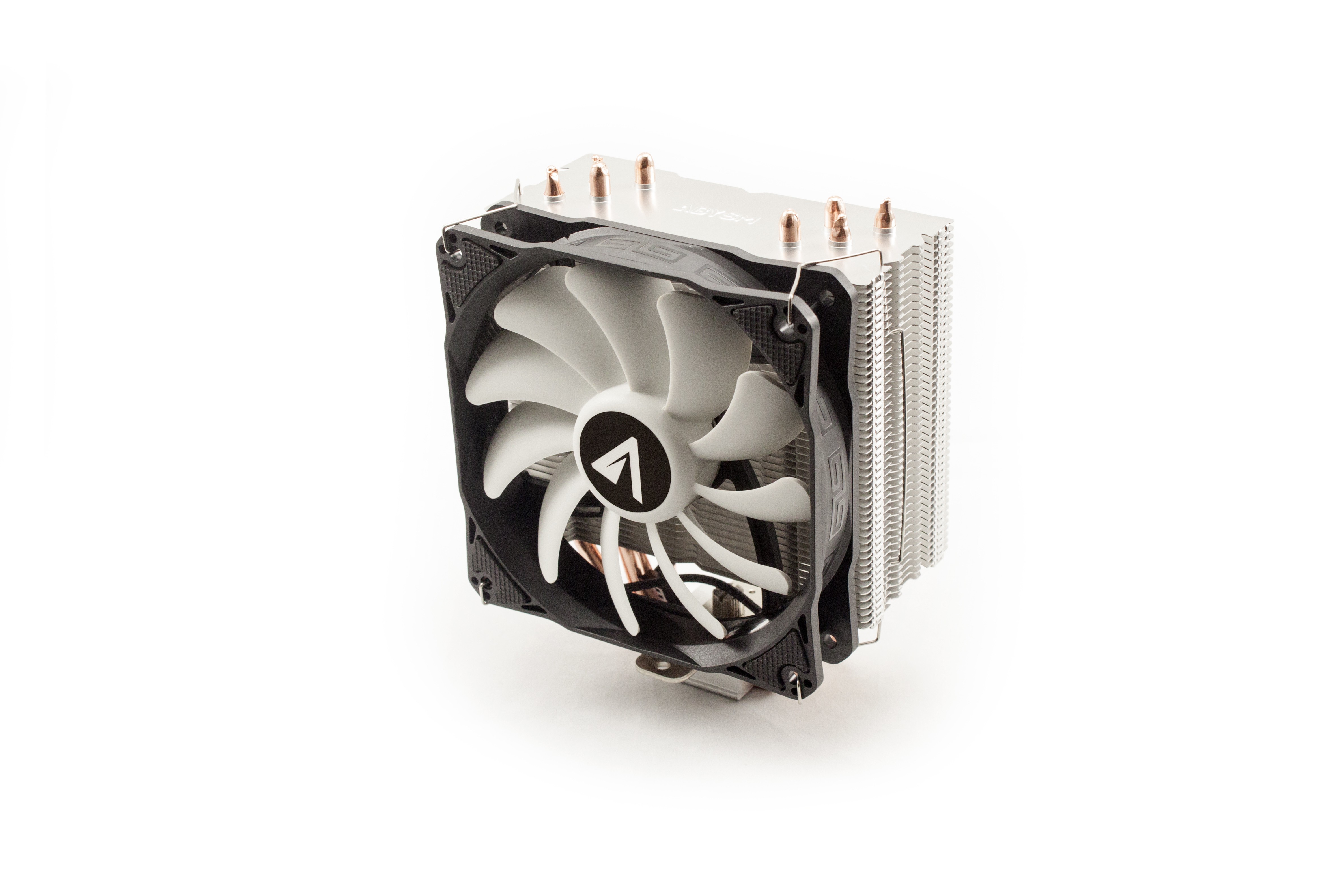 ABYSM Snow IV. Tipo: Refrigeratore, Diametro del ventilatore: 12 cm, Velocità (minima) di rotazione: 800 Giri/min, Velocità (massima) di rotazione: 1400 Giri/min, pressione dell'aria massima: 1,65 mmH2O, Tipo di cuscinetto: Idraulico. Voltaggio: 12 V. Larghezza: 123 mm, Profondità: 78 mm, Altezza: 155 mm. Colore del prodotto: Nero, Bianco