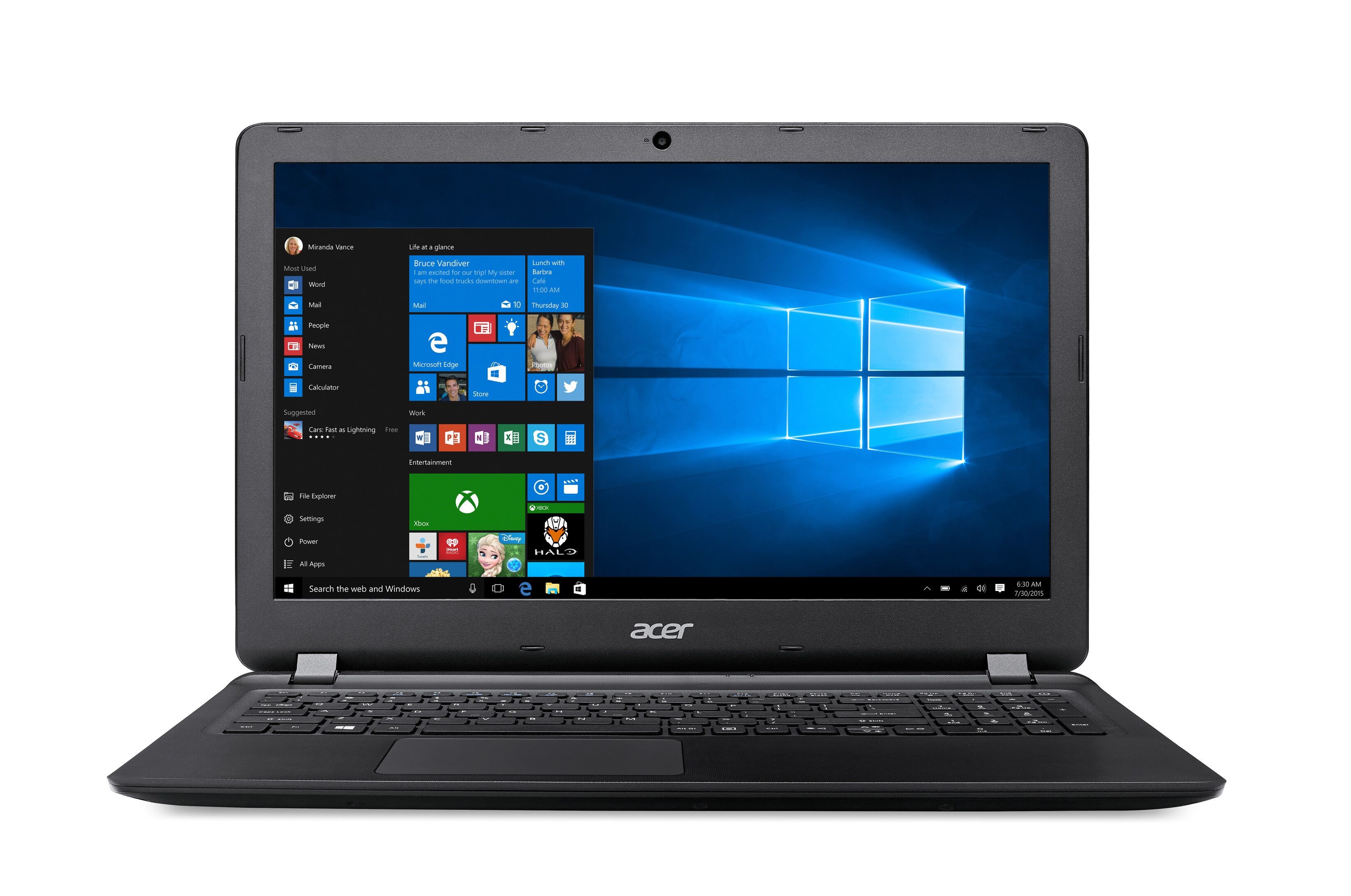 Acer Aspire ES1-523-26S0. Tipo di prodotto: Computer portatile, Fattore di forma: Clamshell. Famiglia processore: AMD E, Modello del processore: E1-7010, Frequenza del processore: 1,5 GHz. Dimensioni schermo: 39,6 cm (15.6"), Risoluzione del display: 1366 x 768 Pixel. RAM installata: 4 GB, Tipo di RAM: DDR3L-SDRAM. Capacità totale di archiviazione: 500 GB, Supporto di memoria: HDD. Tipo drive ottico: DVD Super Multi DL. Scheda grafica integrata. Sistema operativo incluso: Windows 10 Home. Colore del prodotto: Nero