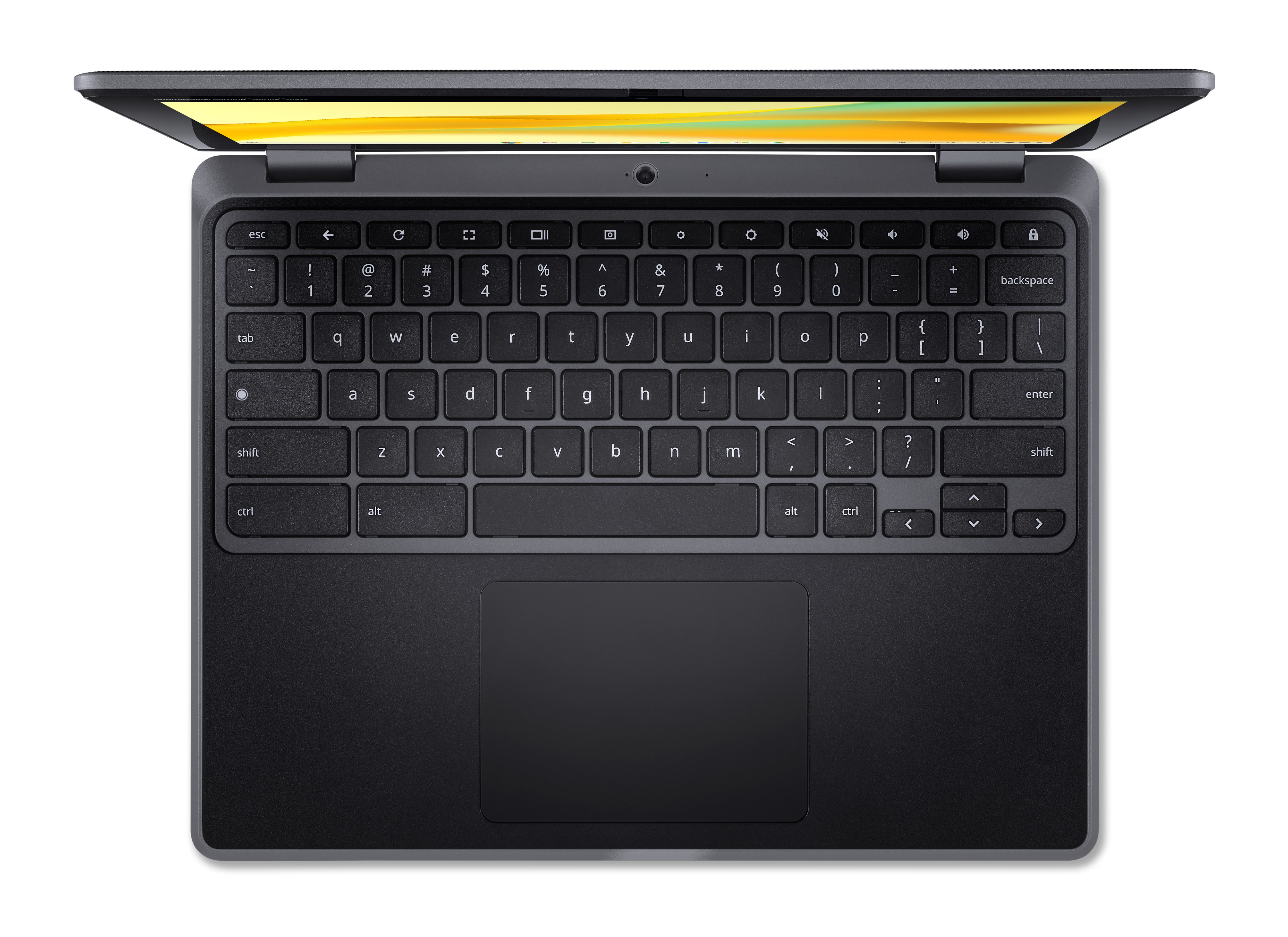 Acer Chromebook R856TNTCO-C8LP. Tipo di prodotto: Chromebook, Fattore di forma: Convertibile (a cartella). Famiglia processore: Intel® N, Modello del processore: N100. Dimensioni schermo: 30,5 cm (12"), Tipologia HD: HD+, Risoluzione del display: 1366 x 912 Pixel, Touch screen. RAM installata: 8 GB, Tipo di RAM: LPDDR5-SDRAM. Capacità totale di archiviazione: 64 GB, Supporto di memoria: eMMC. Modello scheda grafica integrata: Intel® UHD Graphics. Sistema operativo incluso: ChromeOS. Colore del prodotto: Nero