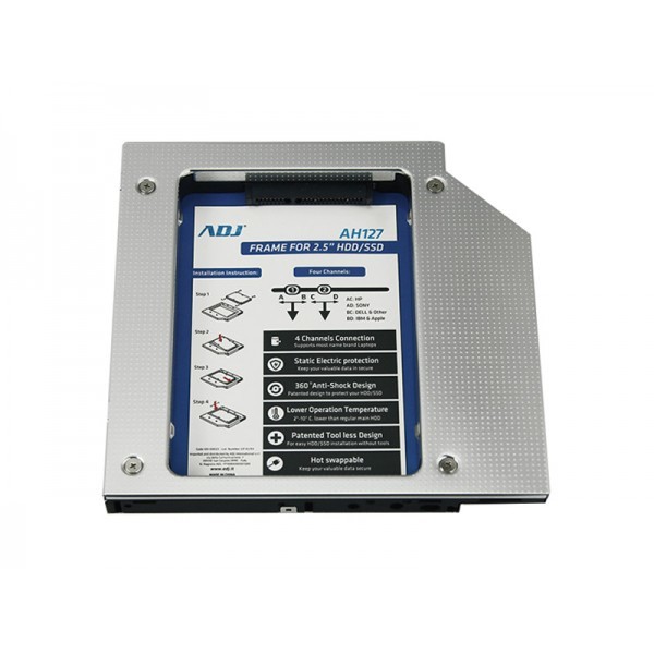 Adj 120-00023, Frame HDD/SDD per computer portatile, Nero, Argento, Alluminio, Monocromatico, HDD & SSD, 2.5"