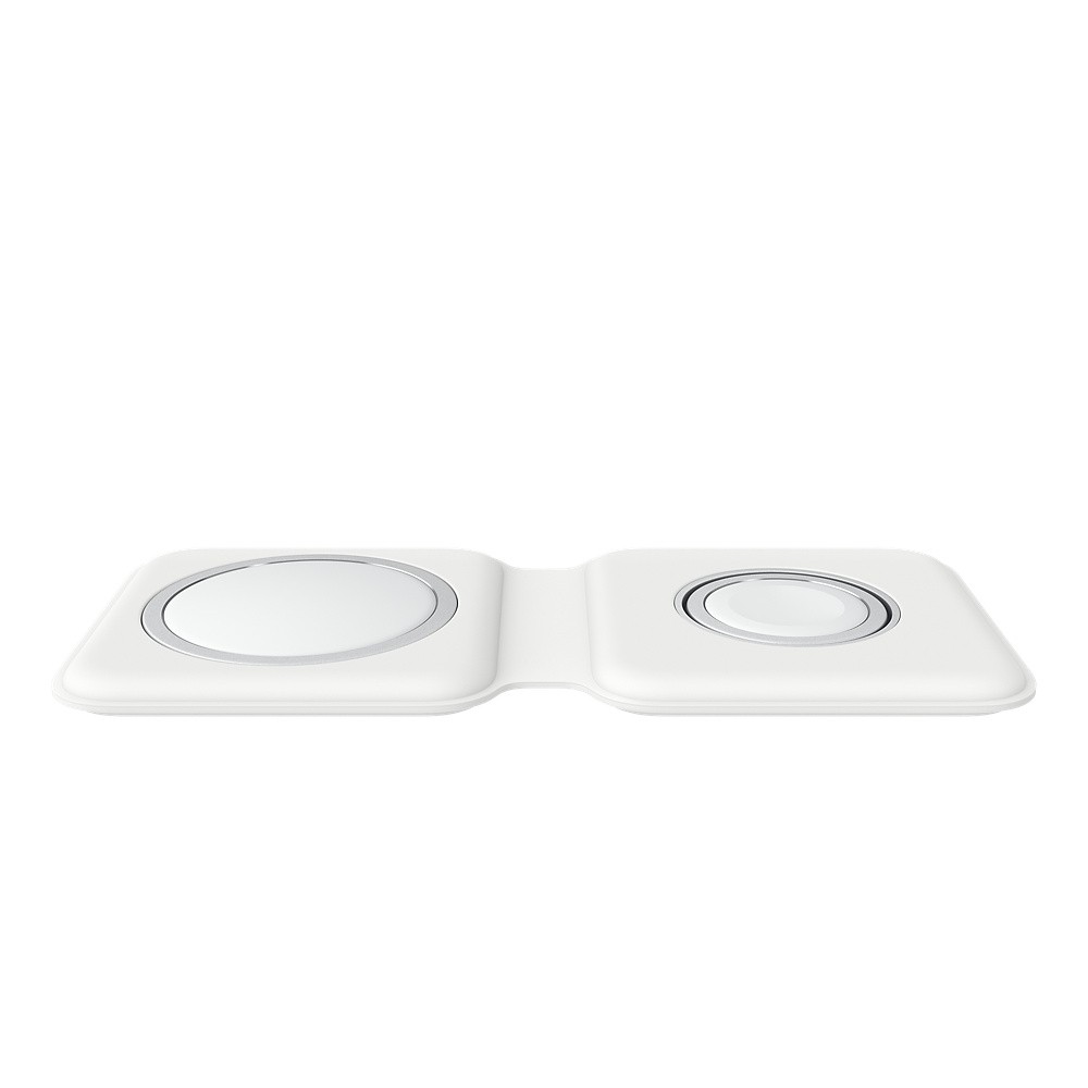 L’alimentatore duo MagSafe ricarica comodamente i modelli compatibili di iPhone e Apple Watch, la custodia di ricarica wireless per AirPods e altri dispositivi certificati Qi: ti basta appoggiarli sull’alimentatore. E si ripiega comodamente, così puoi averlo sempre con te.