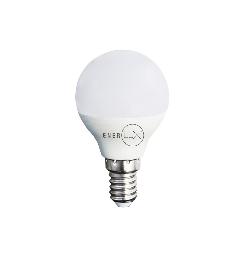 Adj Enerlux. Potenza lampadina: 7 W, Lampadina di potenza equivalente: 50 W, Attacco lampada: E14. Classe efficienza energetica: A+. Flusso luminoso: 638 lm, Durata della lampadina: 25000 h, Colore della luce: Bianco neutro, Temperatura colore: 4000 K, Angolo proiezione: 200°, Color Rendering Index (CRI): 80
