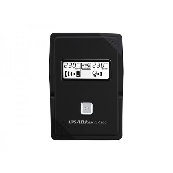 Adj 650-00900. Potenza in uscita: 900 VA, Potenza in uscita: 630 W, Frequenza di ingresso: 50/60 Hz. Quantità prese AC: 3 presa(e) AC. Tecnologia batteria: Acido piombo (VRLA), Tempo di salvataggio minimo a pieno carico: 15 min, Tempo di salvataggio minimo a mezzo carico: 10 min. Fattore di forma: Compatta, Colore del prodotto: Nero, Tipologia display: LCD. Larghezza: 100 mm, Profondità: 328 mm, Altezza: 145 mm