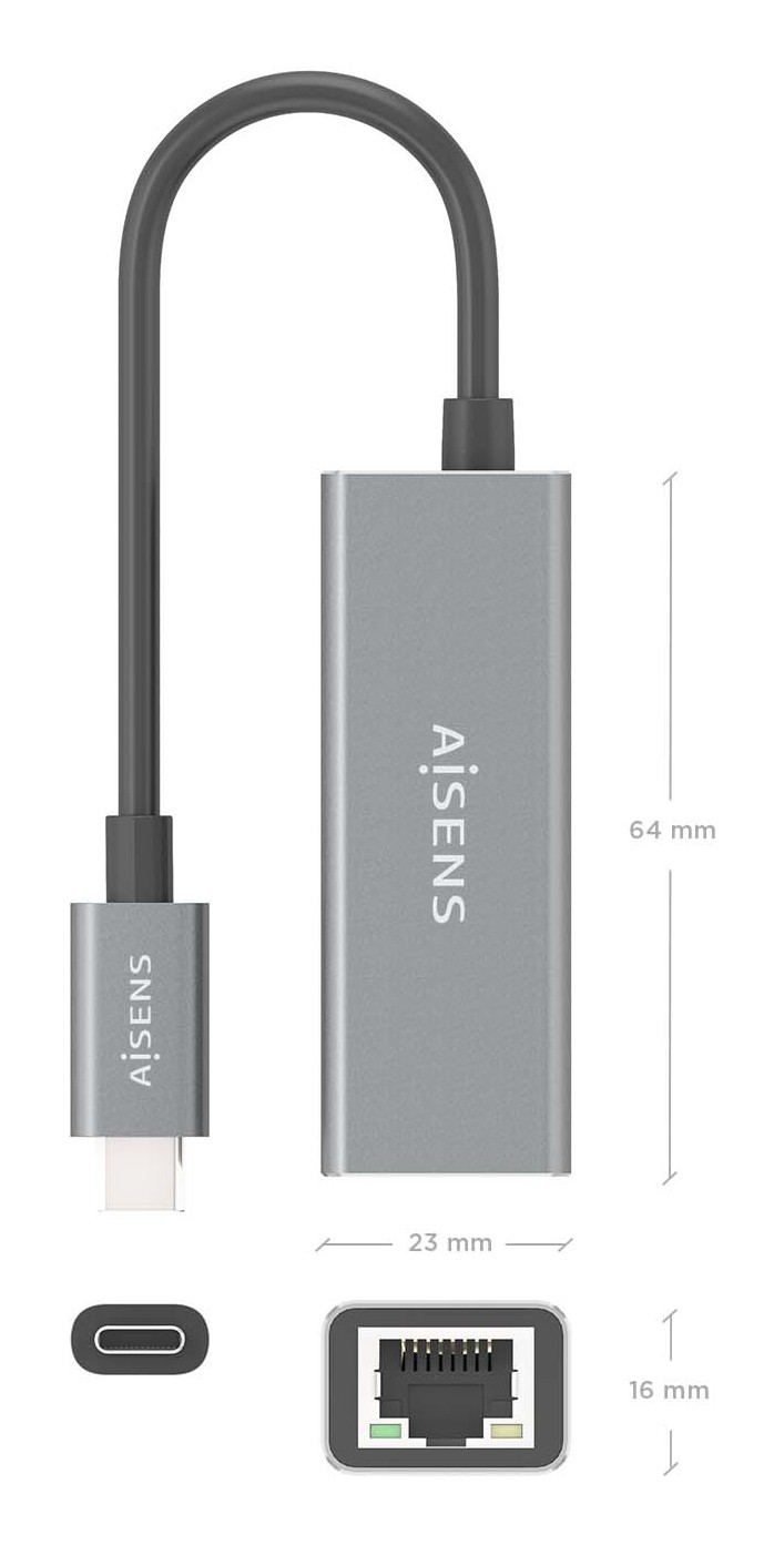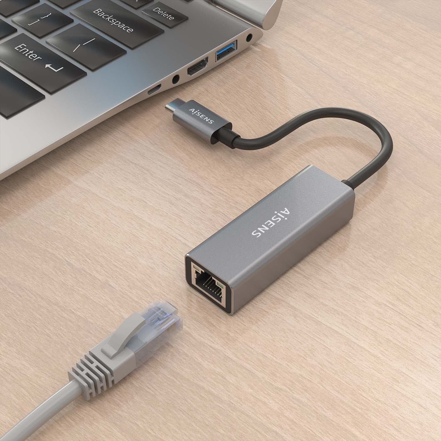 AISENS A109-0898, Cablato, USB tipo-C, Ethernet, 1000 Mbit/s, Grigio