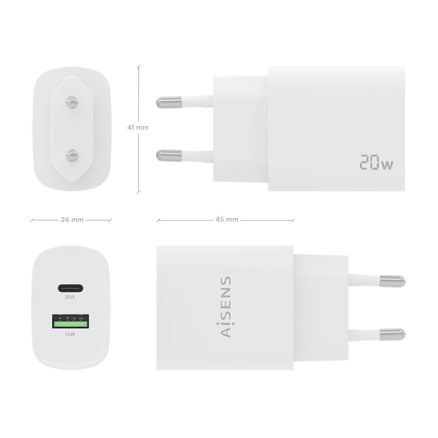 AISENS A110-0754. Tipo di caricatore: Interno, Tipologia alimentazione: AC, Compatibilità caricatore: Universale. Voltaggio di ingresso: 100 - 240 V, Tensione di uscita (max): 12,09 V. Quantità porte USB 2.0: 1, Quantità di porte USB Tipo C: 1, Ricarica rapida, Funzionalità di protezione dell'alimentazione: Sovraccarico, Sovraccarico, Cortocircuito. Colore del prodotto: Bianco