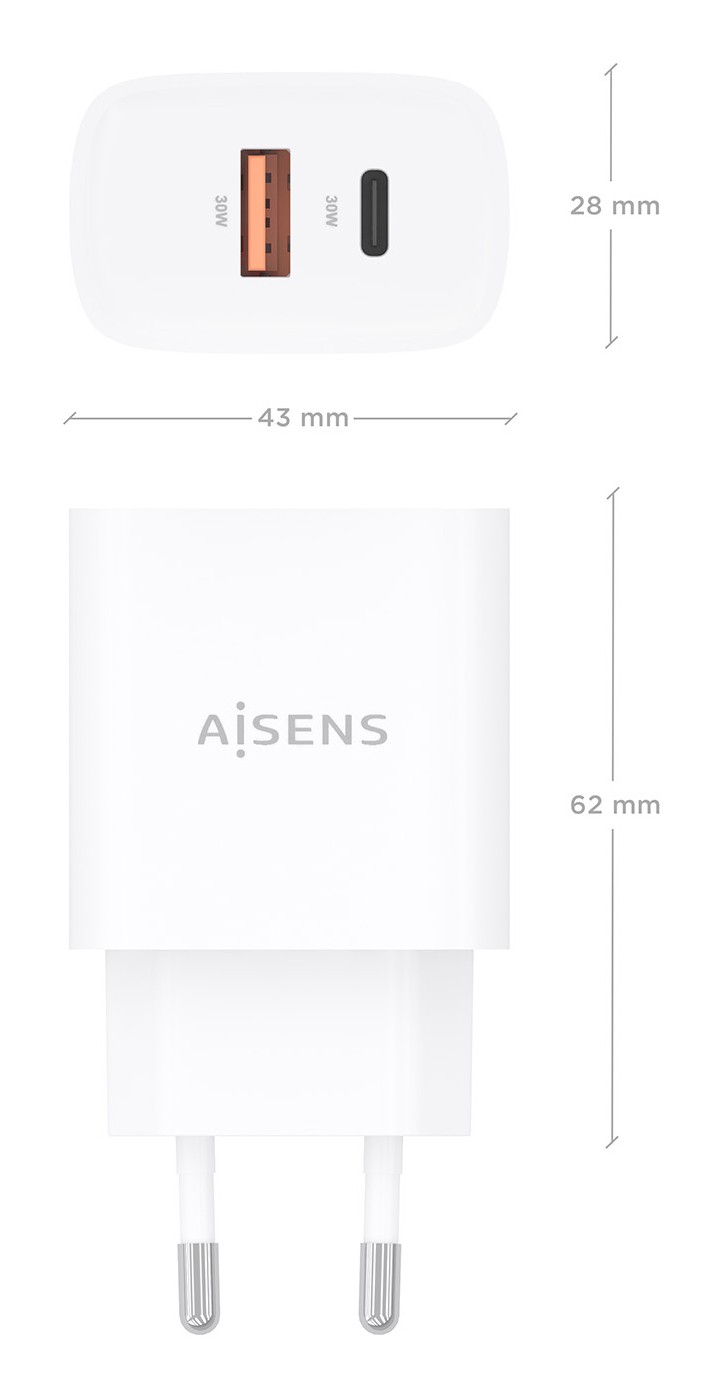 AISENS A110-0952. Tipo di caricatore: Interno, Tipologia alimentazione: AC, Compatibilità caricatore: Universale. Voltaggio di ingresso: 100 - 240 V, Tensione di uscita (max): 12 V, Adattatore di corrente output AC: 3 A. Quantità porte USB 2.0: 1, Quantità di porte USB Tipo C: 1, Ricarica rapida, Funzionalità di protezione dell'alimentazione: Sovraccarico, Cortocircuito. Colore del prodotto: Bianco