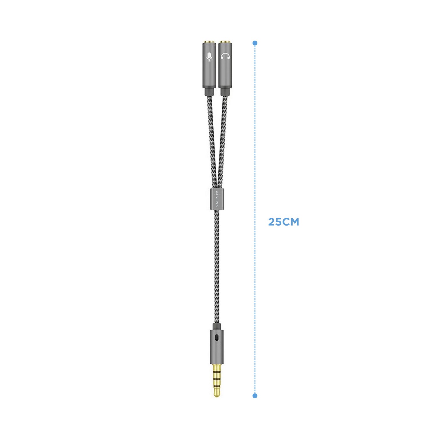 AISENS A128-0415. Connettore 1: 3.5mm, Genere del connettore 1: Maschio, Connettore 2: 2 x 3.5mm, Genere del connettore 2: Femmina, materiale del cavo: Rame, Placcatura contatti: Alluminio, Lunghezza cavo: 0,25 m, Colore del prodotto: Grigio