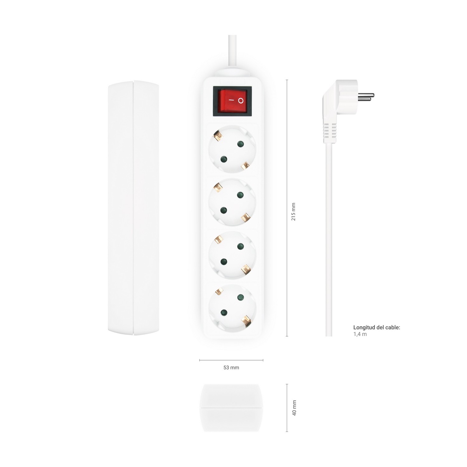 AISENS A154-0649. Lunghezza cavo: 1,4 m, Posizionamento supportato: Interno, Tipo di uscita AC: Tipo F. Quantità prese AC: 4 presa(e) AC. Tensione di ingresso AC: 250 V, Massima potenza in entrata: 3500 W, Corrente massima: 16 A. Larghezza: 53 mm, Profondità: 215 mm, Altezza: 40 mm. Numero di prodotti inclusi: 1 pz, Larghezza imballo: 90 mm, Profondità imballo: 250 mm