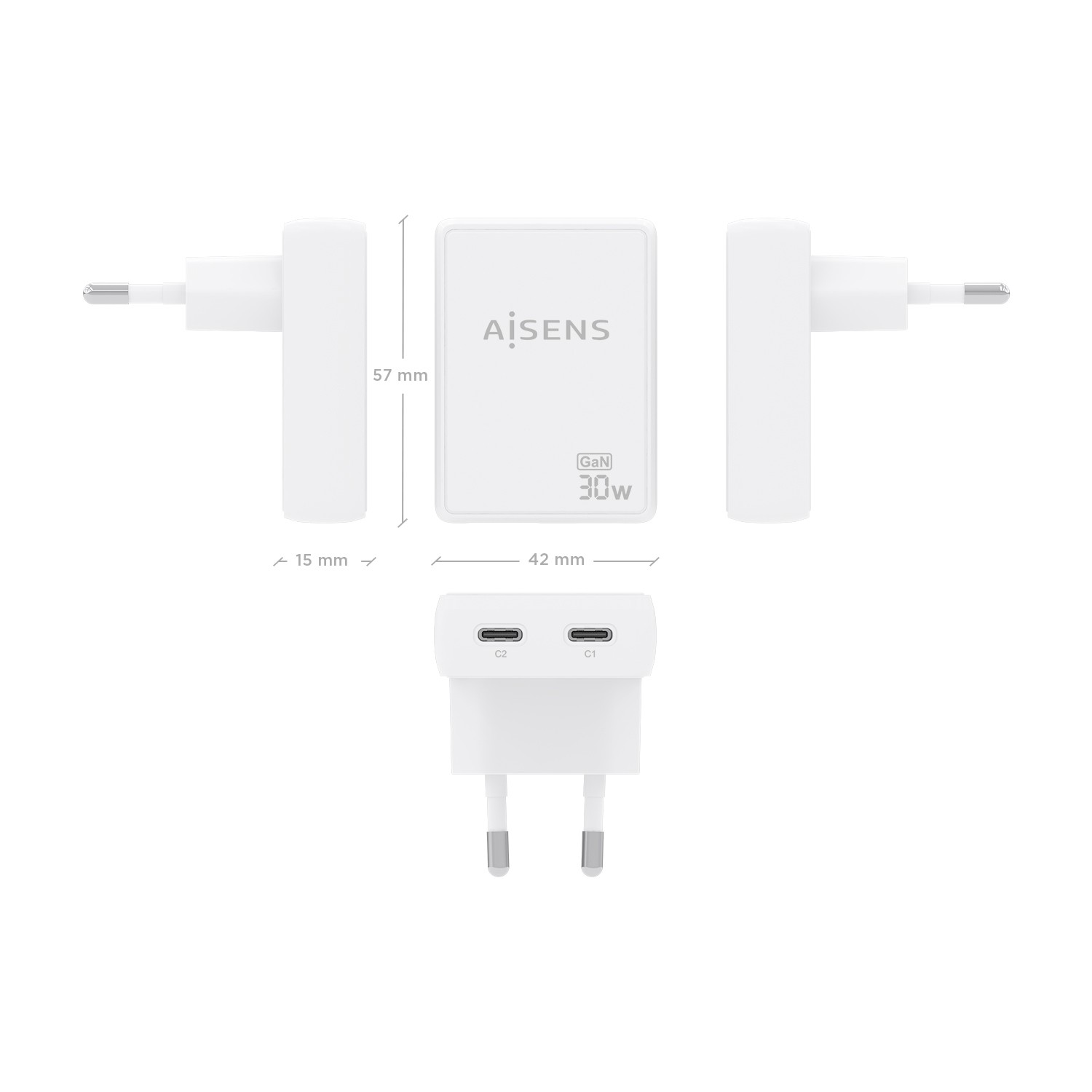 AISENS ASCH-30W2P075-W, Interno, AC, 20 V, Bianco