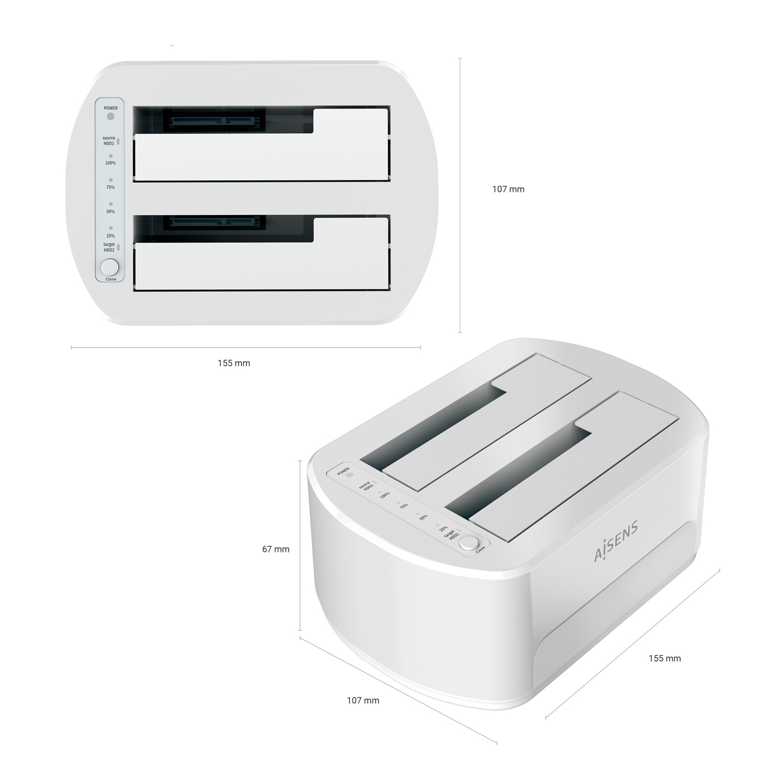 AISENS ASDS-D02W docking station per unità di archiviazione USB 3.2 Gen 1 (3.1 Gen 1) Type-B Bianco