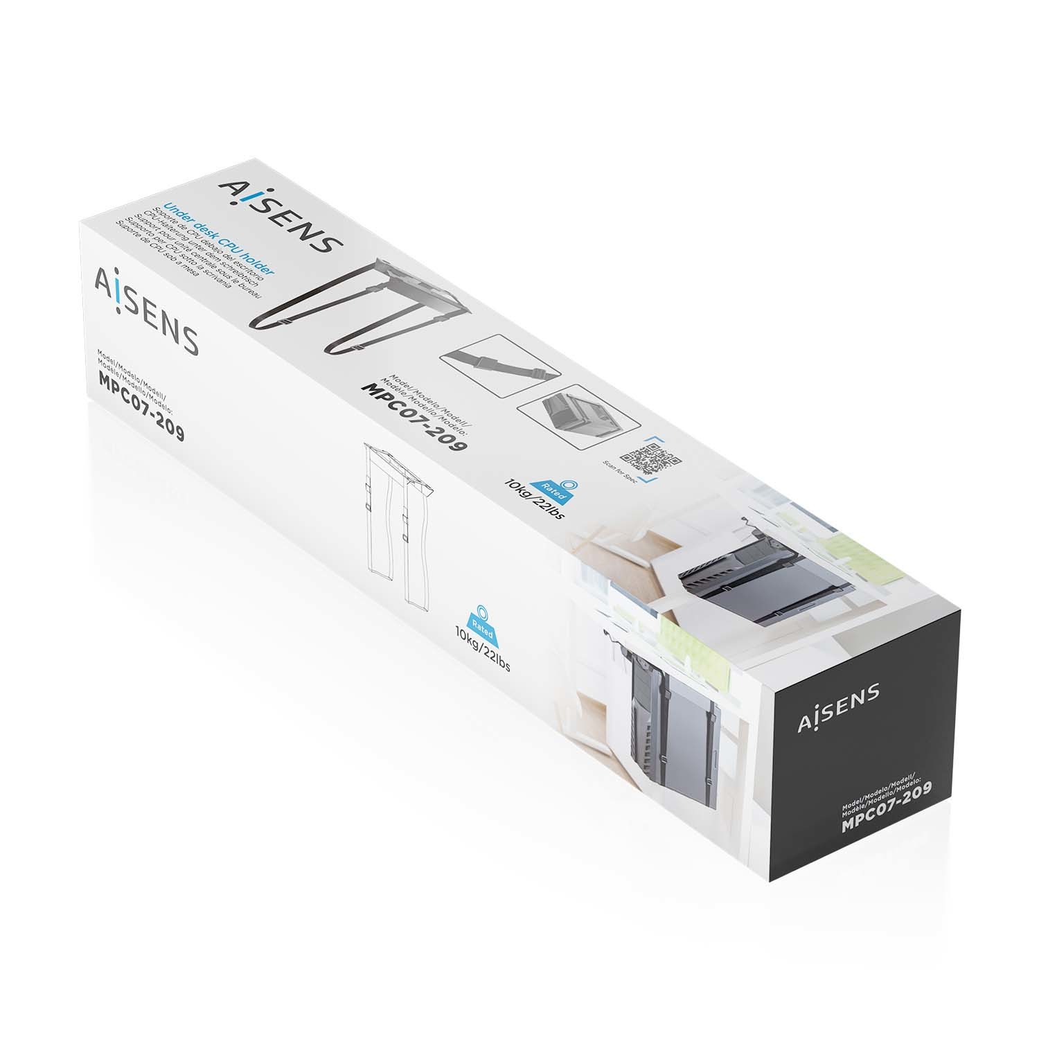 AISENS MPC07-209. Tipo: Porta CPU sotto scrivania, Tipo di chassis raccomandato: Tower, Peso massimo (capacità): 10 kg. Ampiezza del computer supportata (orizzontale) (min): 34 cm, Ampiezza del computer supportata (orizzontale) (max): 54 cm, Altezza del computer supportata (verticale) (min): 34 cm. Larghezza: 50 mm, Profondità: 340 mm, Altezza: 50 mm. Larghezza scatola principale: 370 mm, Lunghezza del cartone principale: 535 mm, Altezza scatola principale: 150 mm