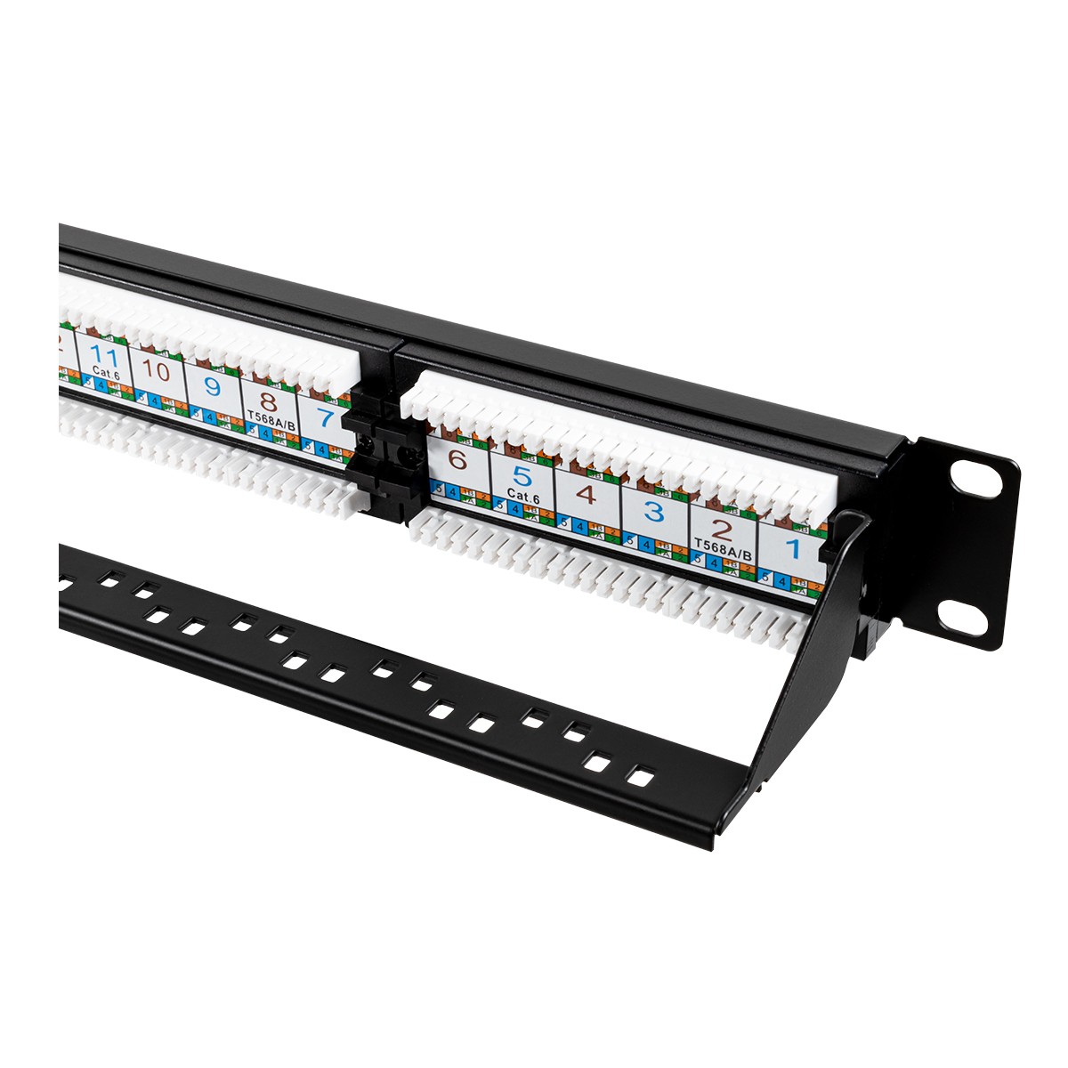 aiten data 80.24.06U. Tipi di cavi supportati: Cat6, Schermatura dei cavi: U/FTP (STP). Colore del prodotto: Nero, Materiali: Acciaio, Montaggio: Montaggio a rack. Larghezza: 480 mm, Profondità: 82 mm, Peso: 642 g. Larghezza imballo: 500 mm, Profondità imballo: 100 mm, Altezza imballo: 50 mm