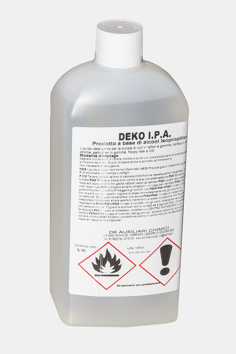 Confezione 1 litro detergente alcool isopropilico.Le sue caratteristiche di rapida evaporazione senza lasciare residui lo rendono idoneo a detergere rapidamente anche punti critici dentro macchinari, fotocopiatrici, oltre che per la detersione e igienizzazione di superfici.Non intacca vetro, metallo e plastica.Composizione Alcool isopropilico 90%Metossi - Propanolo 10%Facilmente biodegradabile. Si ossida rapidamente all'aria per reazione fotochimica.Non d? fenomeni di bioaccumulazione.Utilizzare secondo le buone pratiche lavorative, evitando di disperdere il prodotto nell?ambientePer uso come detergenteStato Fisico: LiquidoColore: Incolore.pH: neutroPunto di ebollizione 82? CPunto di fusione -85? CTensione di vapore a 20? C4 kPaIntervallo di distillazione82 - 185? CSolubilit? in acqua: Completamente solubileViscosit? a 25? C. .Peso molecolare e calcolato: 63,1Densit? vapori > 1 (aria = 1)Peso specifico 0,799 Kg/i