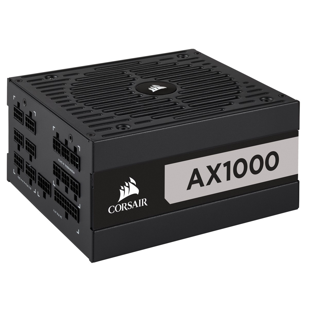 Corsair AX1000. Potenza totale: 1000 W, Tensione di ingresso AC: 100 - 240 V, Frequenza di ingresso AC: 50/60 Hz. Connettore scheda madre: 20+4 pin ATX, Lunghezza del cavo di alimentazione della scheda madre: 61 cm, Lunghezza del cavo di alimentazione SATA: 800 mm. Utilizzo: PC, Fattore di forma dell'unità di alimentazione (PSU): ATX, Certificazione 80 PLUS: 80 PLUS Titanium. Colore del prodotto: Nero, Diametro del ventilatore: 13,5 cm, Numero di ventole: 1 ventola(e). Larghezza: 170 mm, Profondità: 86 mm, Altezza: 150 mm