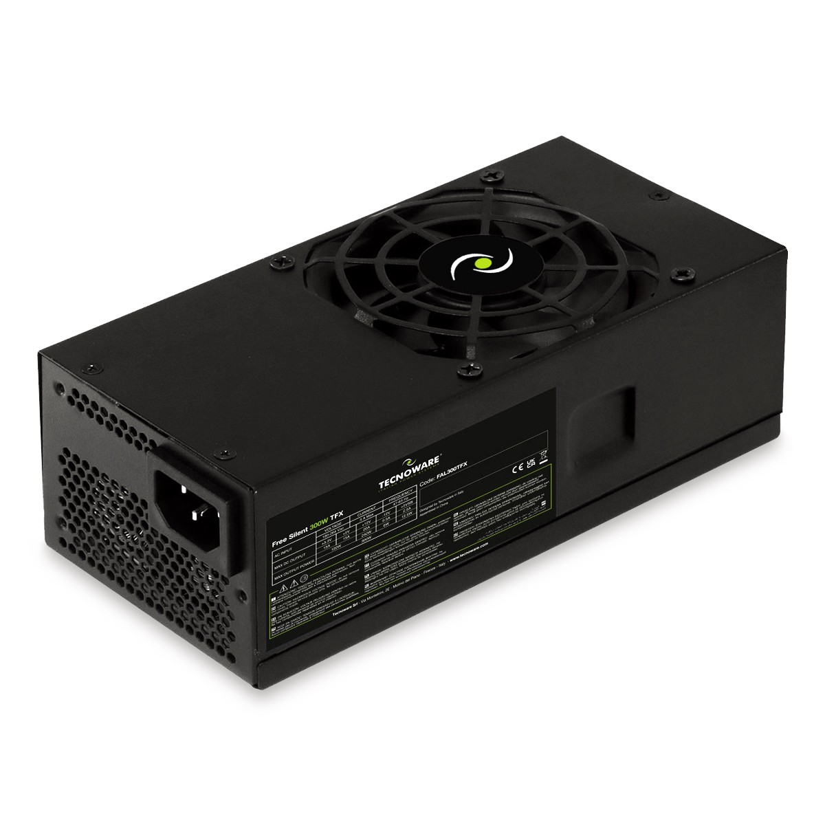 Tecnoware FAL300TFX. Potenza totale: 300 W, Tensione di ingresso AC: 180 - 264 V, Frequenza di ingresso AC: 47 - 63 Hz. Connettore scheda madre: 20+4 pin ATX, Lunghezza del cavo di alimentazione della scheda madre: 35 cm, Lunghezza del cavo di alimentazione SATA: 150,350 mm. Utilizzo: PC, Fattore di forma dell'unità di alimentazione (PSU): TFX. Colore del prodotto: Nero, Diametro del ventilatore: 8 cm. Certificati di conformità: CE, Compatibilità elettromagnetica (EMC), RoHS