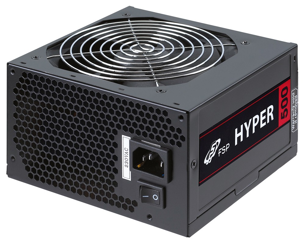 FSP/Fortron Hyper S. Potenza totale: 500 W, Tensione di ingresso AC: 200 - 240 V, Frequenza di ingresso AC: 50 - 60 Hz. Connettore scheda madre: 20+4 pin ATX. Utilizzo: PC, Fattore di forma dell'unità di alimentazione (PSU): ATX, Sicurezza: CE, CB, TUV, C-tick. Colore del prodotto: Nero, Tipo di raffreddamento: Attivo, Diametro del ventilatore: 12 cm. Larghezza: 140 mm, Profondità: 150 mm, Altezza: 86 mm