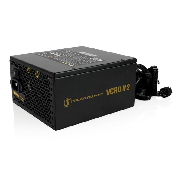 SilentiumPC Vero M2. Potenza totale: 600 W, Tensione di ingresso AC: 100 - 240 V, Frequenza di ingresso AC: 47 - 67 Hz. Connettore scheda madre: 20+4 pin ATX, Lunghezza del cavo di alimentazione della scheda madre: 67 cm, Lunghezza del cavo di alimentazione SATA: 500,650,800 mm. Utilizzo: PC, Fattore di forma dell'unità di alimentazione (PSU): ATX, Fattore di forma scheda madre supportato: ATX. Colore del prodotto: Nero, Diametro del ventilatore: 12 cm, Numero di ventole: 1 ventola(e). Larghezza: 150 mm, Profondità: 160 mm, Altezza: 86 mm