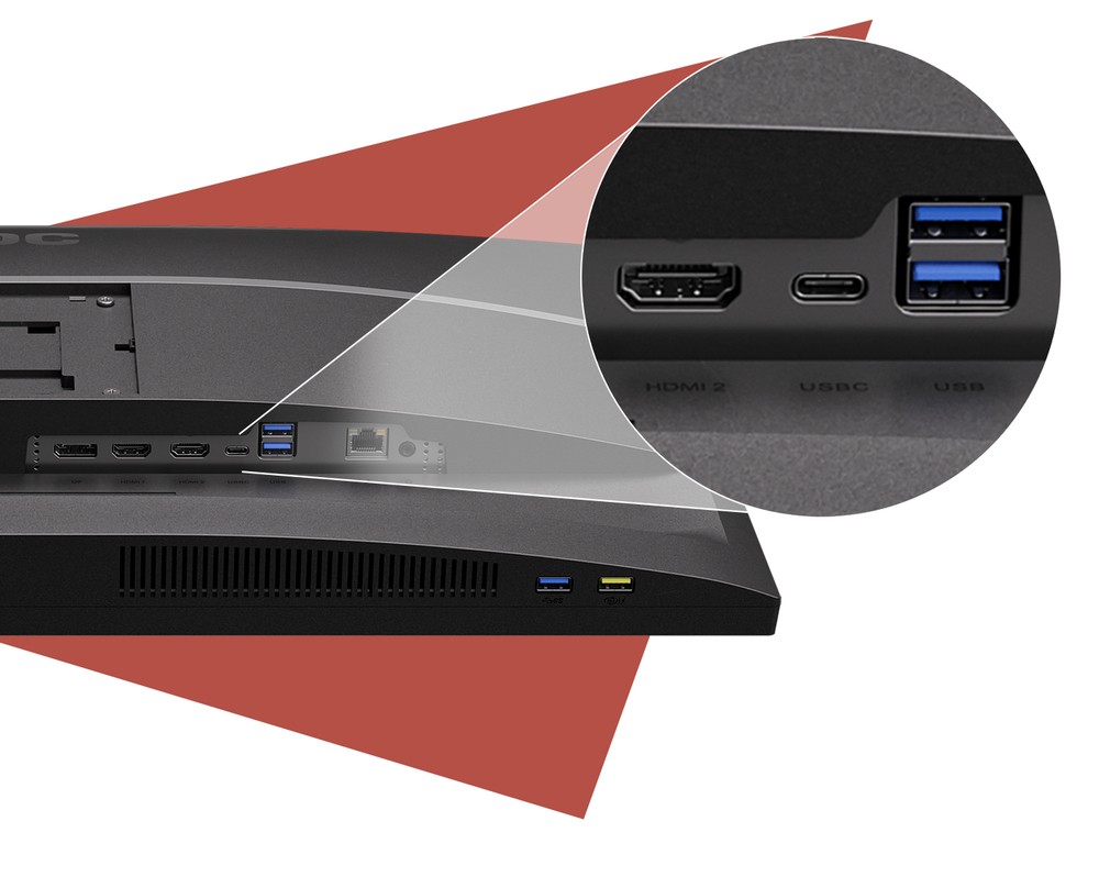 Connessioni semplici con un solo cavo. La connessione USB-C offre la funzione DisplayPort Alternate Mode per il trasferimento di segnali video ad alta risoluzione da un notebook al monitor; al tempo stesso, si può ricaricare la batteria del notebook dal monitor tramite alimentazione USB.