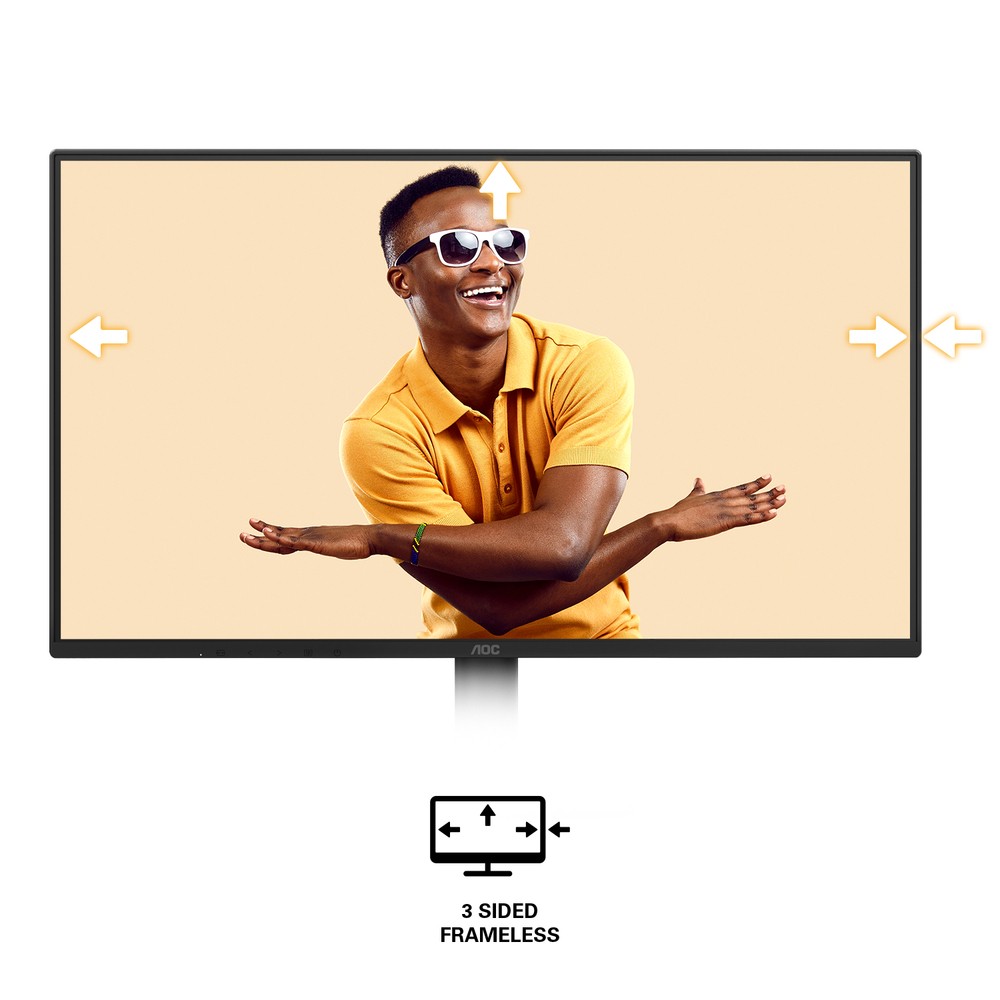 L'AOC 27B31H vanta un display Full HD da 27" con frequenza di aggiornamento di 120 Hz, MPRT da 1 ms e Adaptive Sync per immagini fluide e reattive. Grazie alla tecnologia a bassa emissione di luce blu, all'assenza di sfarfallio e al design senza cornice su 3 lati, garantisce sia il comfort visivo sia un'esperienza visiva immersiva.
