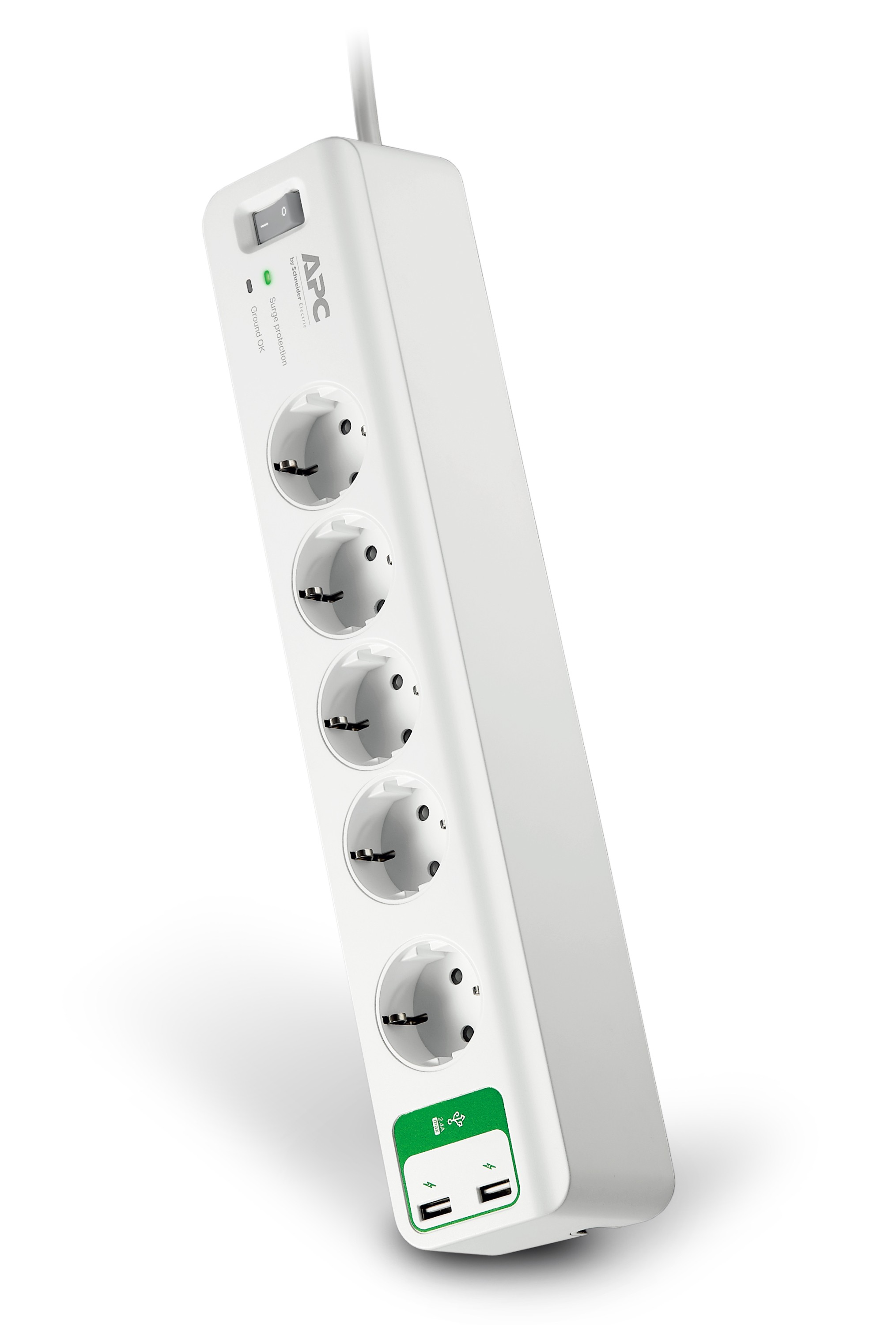 APC PM5U-GR. Valutazione sovraccarico energetico: 918 J, Quantità prese AC: 6 presa(e) AC, Tipo di uscita AC: Tipo F. Presa di corrente: Tipo F. Colore del prodotto: Bianco, Filtro rumore EMI/RFI: 40 dB. Lunghezza cavo: 1,83 m, Peso: 670 g, Larghezza: 370 mm. Larghezza imballo: 405 mm, Profondità imballo: 130 mm, Altezza imballo: 58 mm