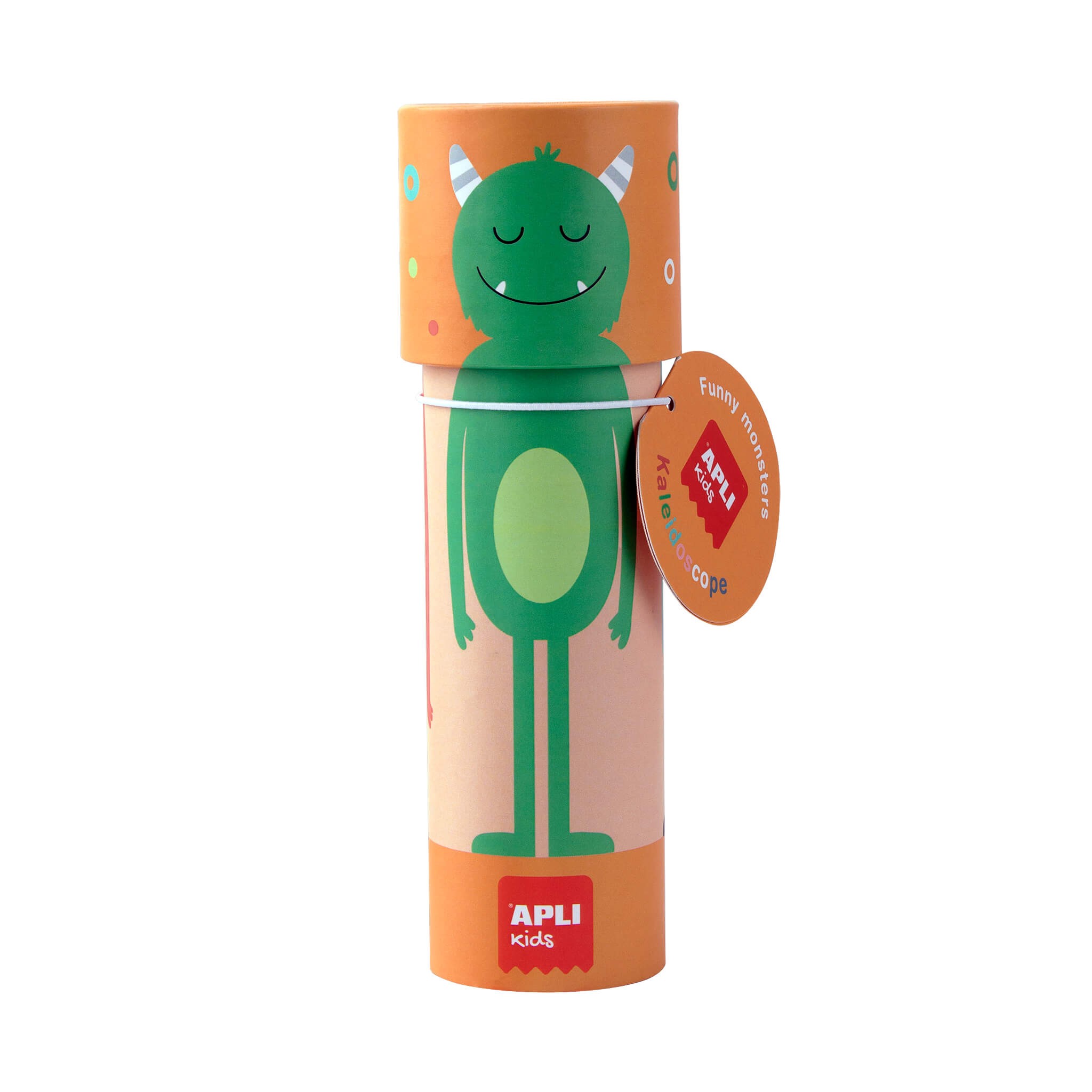 Il caleidoscopio modello Funny Monsters è uno strumento ottico di 169 x Ø 55 mm che offre un'esperienza visiva unica. Girandolo, puoi scambiare le parti del corpo dei personaggi e formare diverse combinazioni di creature, rendendolo un giocattolo divertente e creativo.