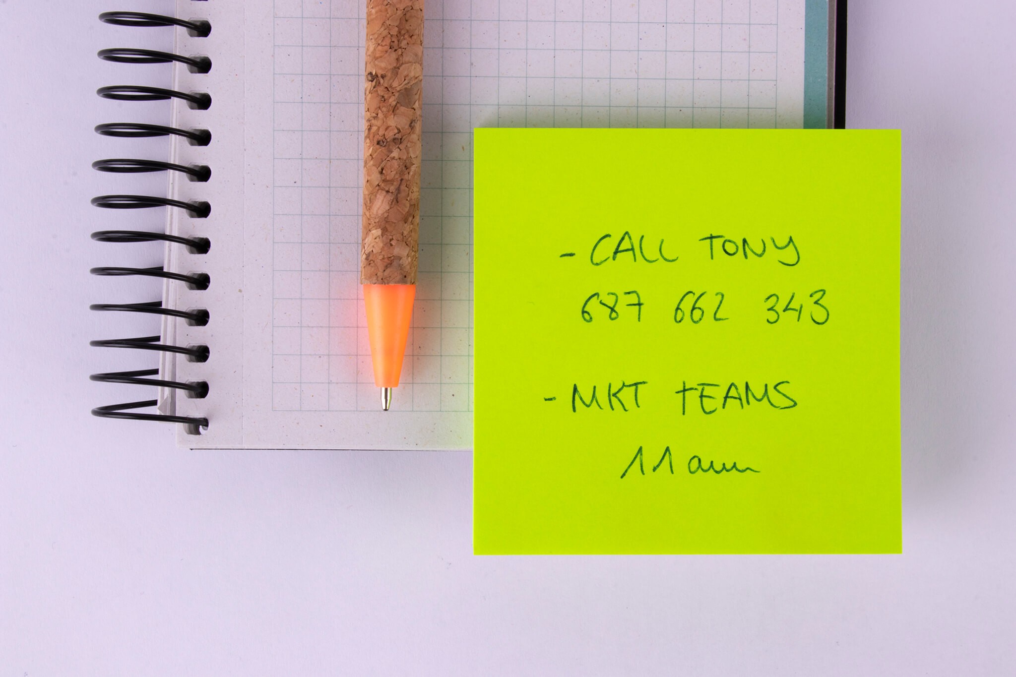 - Blocco di foglietti adesivi 75 x 75 mm in verde fluoro.