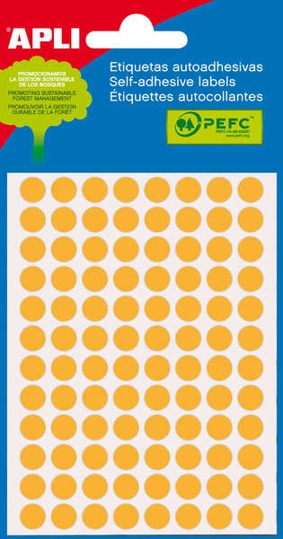 Recensioni Apli Mini Bag da 288 etichette rotonde Ø 8mm - 3 fogli da 96 etichette - Adesivo permanente - Colore arancione fluorescente