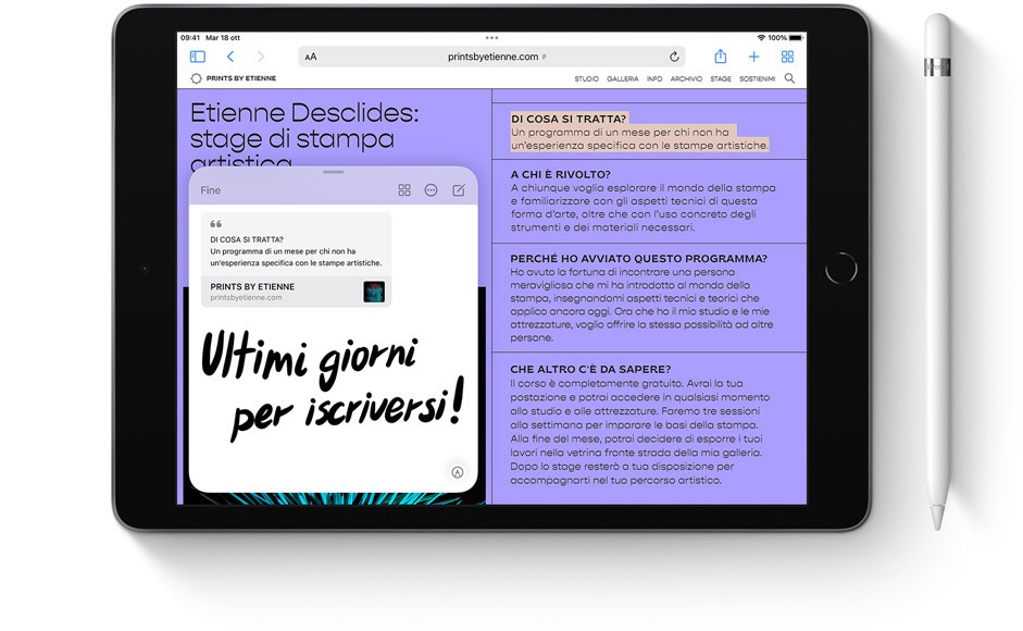 Prendi appunti con Apple Pencil e guarda che bellezza.