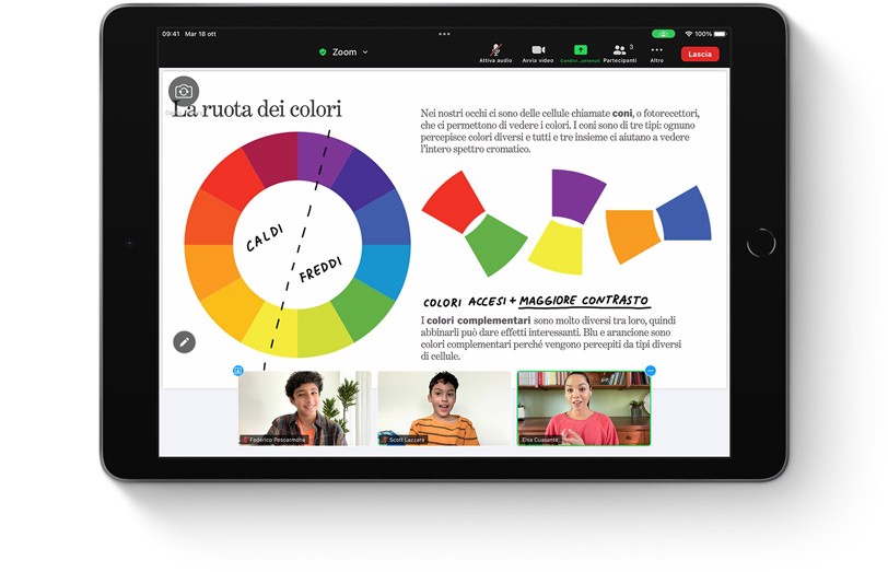 La scuola su iPad non ha limiti, neanche geografici. Basta fare login per seguire lezioni, lavorare a progetti di gruppo o rimanere in contatto con compagni, compagne e insegnanti, ovunque.