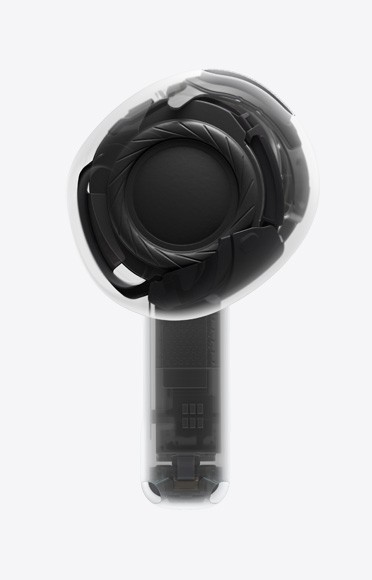 L’equalizzazione adattiva calibra automaticamente la musica in base alla forma del tuo orecchio. I microfoni rivolti verso l’interno rilevano ciò che stai ascoltando, poi tarano le frequenze basse e medie per farti sentire tutti i dettagli di ogni brano.