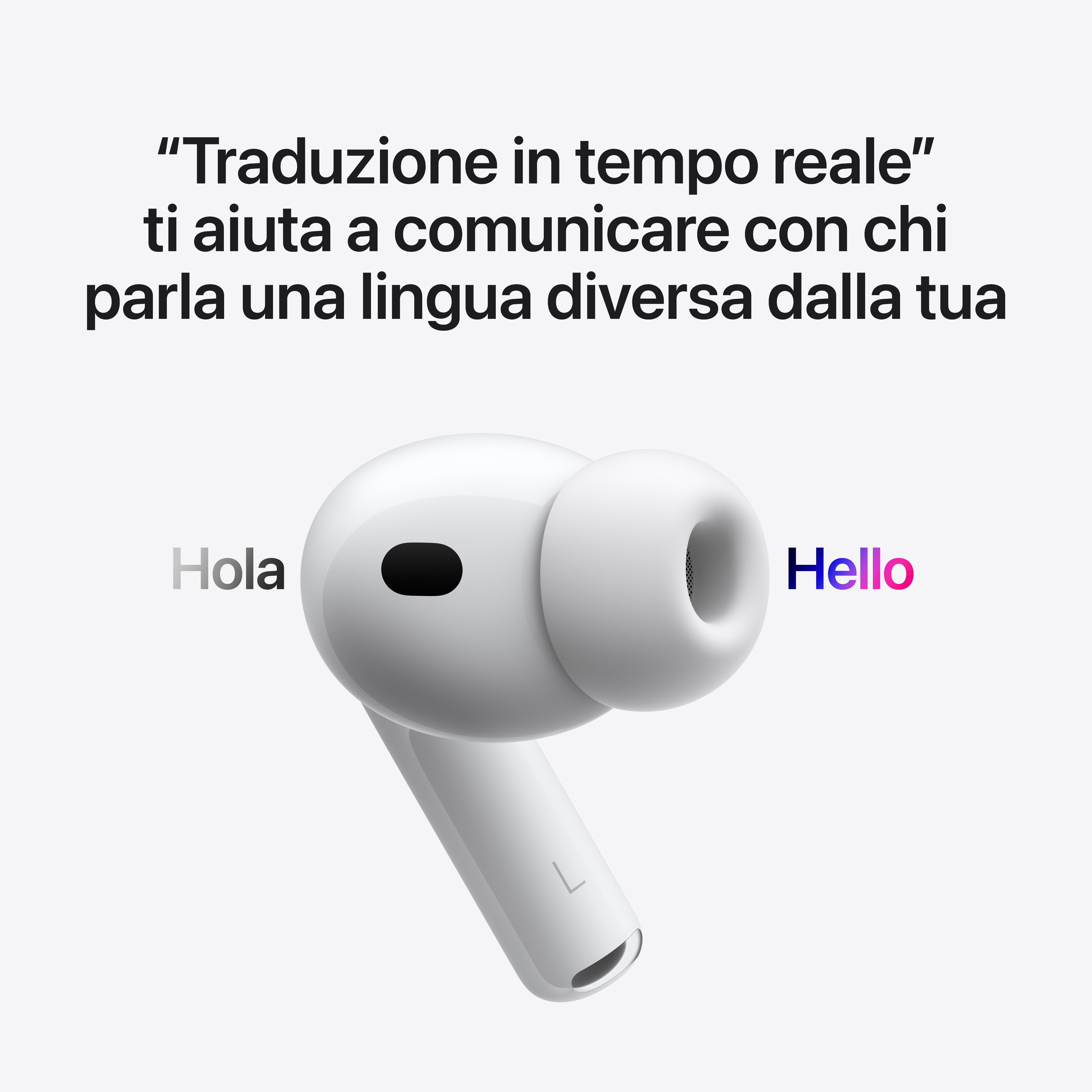 AirPods Pro 3. Cancellazione attiva del rumore fino a 2 volte più efficace rispetto agli AirPods Pro 2.1 Ora con rilevamento della frequenza cardiaca, Traduzione in tempo reale, maggiore autonomia e funzioni per la salute dell’udito migliorate. Design rinnovato per adattarsi meglio a ogni forma di orecchio.