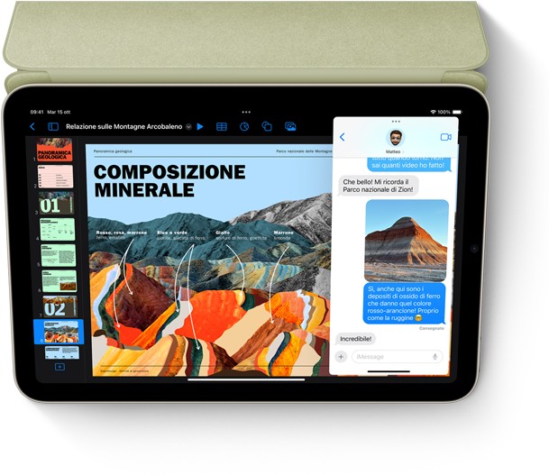 iPad mini è incredibilmente potente per dimensioni così ridotte. Ha il velocissimo chip A17 Pro e un display Liquid Retina da 8,3",[1] e puoi usarlo con Apple Pencil Pro per studiare, lavorare, creare e divertirti ovunque ti trovi.