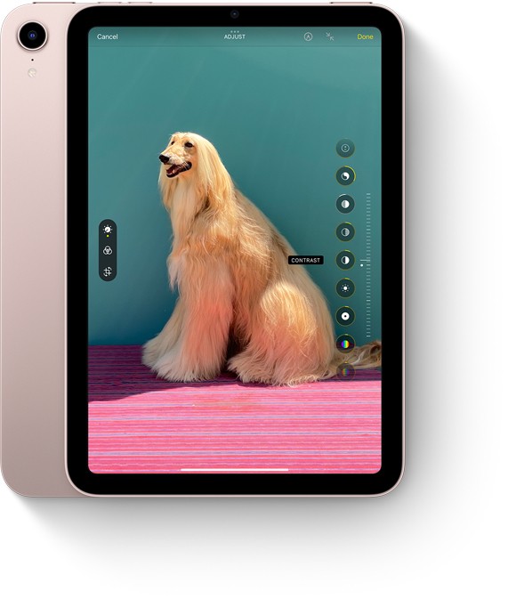 Il display Liquid Retina da 8,3" con True Tone, ampia gamma cromatica P3 e riflettanza minima rende i testi nitidi e i colori brillanti, ovunque sei.