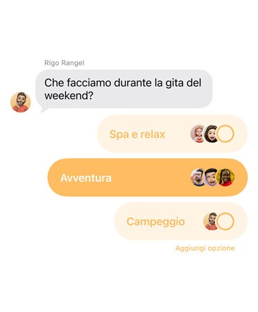 Crea un sondaggio all’interno di una conversazione, e tutti i contatti presenti potranno partecipare e tenere d’occhio i voti man mano che arrivano.