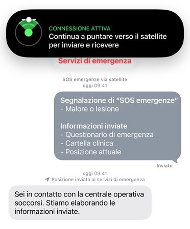 Se provi a chiamare i servizi di emergenza ma non c’è campo o non ci sono reti Wi-Fi disponibili, puoi usare l’iPhone per inviare un messaggio via satellite ai soccorsi.