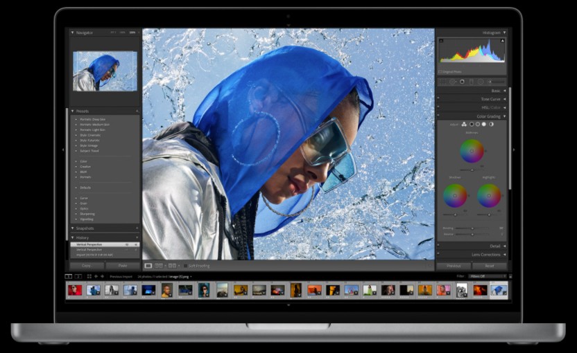Prestazioni pazzesche e un’autonomia mai vista: l’efficienza dei chip Apple è una vera magia. Con una sola carica puoi compilare fino a quattro volte più codice in Xcode o ritoccare immagini in Lightroom Classic fino al doppio del tempo. E a differenza di altri notebook, MacBook Pro ti offre le stesse performance straordinarie anche quando non è collegato alla corrente.