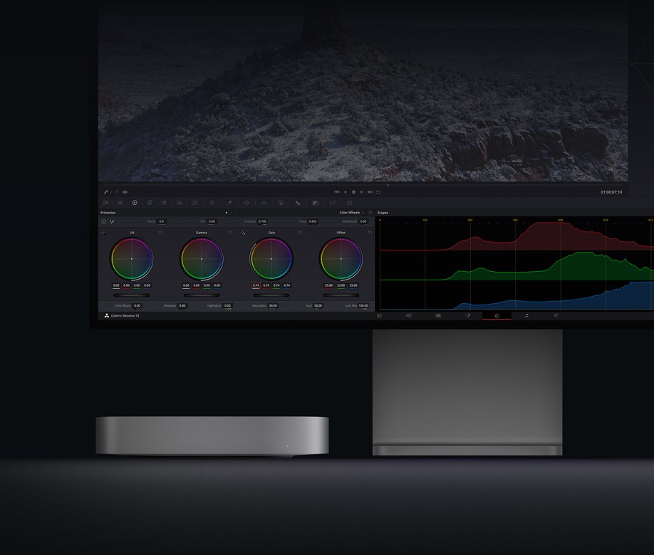 Mac mini è un computer desktop potente, ideale per creare contenuti. In Logic Pro puoi usare più plug-in e sovrapporre più tracce audio. E in Final Cut Pro puoi modificare a tutta velocità più stream di video ProRes a 4K e 8K, grazie al media engine ad alte prestazioni.