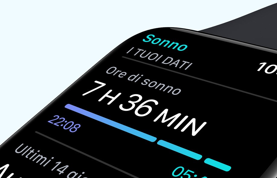 L’app Sonno lavora in coppia con il tuo iPhone per tenere traccia di come e quanto dormi, e ti aiuta a creare una routine della buona notte per migliorare la qualità del riposo. Ti mostra anche un grafico di come hai dormito negli ultimi tempi, così puoi controllare quanto spesso raggiungi i tuoi obiettivi.