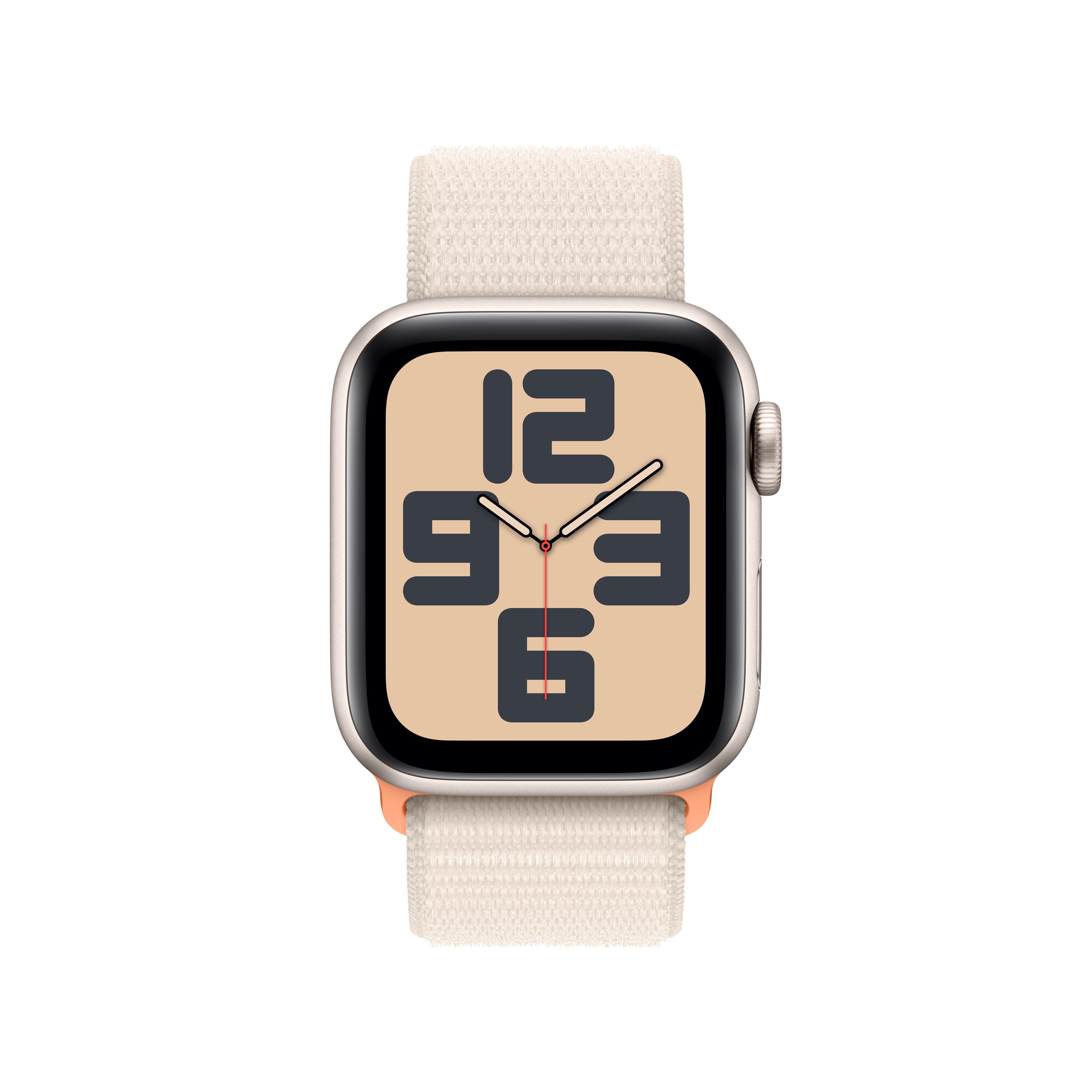 Apple Watch SE GPS + Cellular Cassa 40mm in Alluminio Galassia con Cinturino Sport Loop Galassia. Tecnologia display: OLED, Risoluzione del display: 324 x 394 Pixel, Touch screen. Memoria flash: 32 GB. Wi-Fi. GPS (satellitare). Peso: 27,8 g. Impermeabile fino a: 50 m, Colore cinturino: Beige. Sistema operativo incluso: watchOS 9