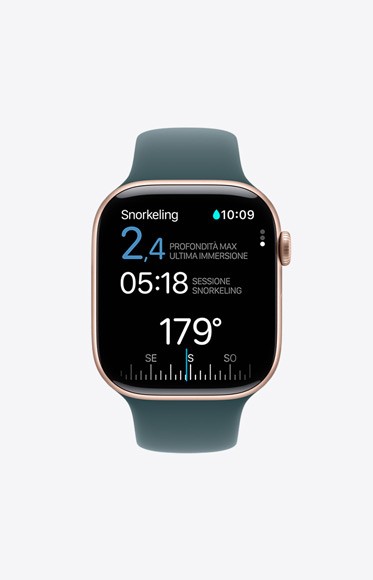 Sul modello Series 10, l’app Oceanic+ offre nuove funzioni per lo snorkeling6 che ti permettono di monitorare tempo di immersione, profondità massima, direzione e altri parametri mentre sei sott’acqua.